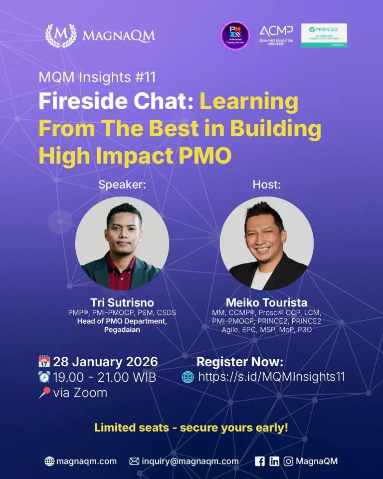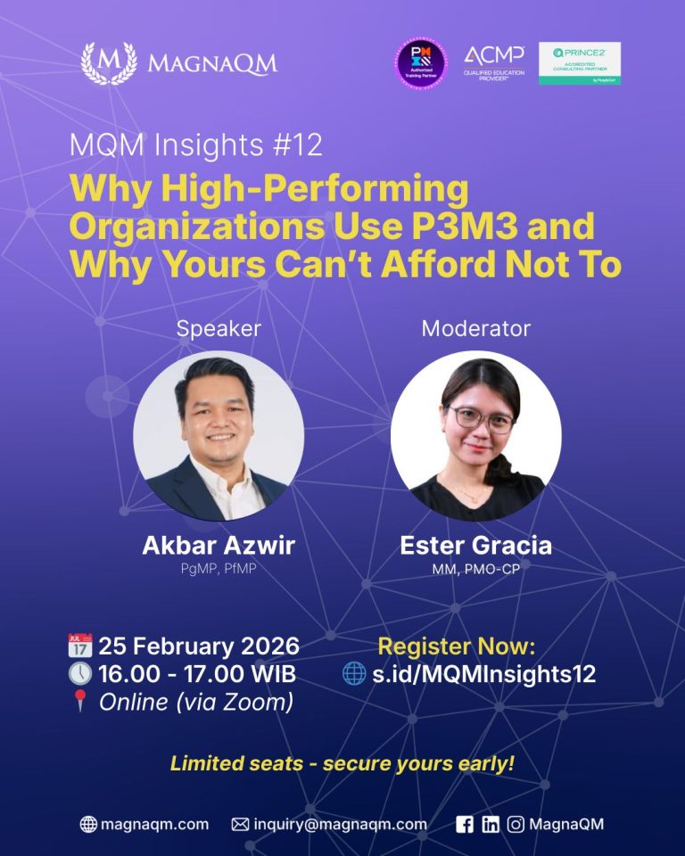 Sesi ini mengupas tuntas kerangka kerja P3M3 (Portfolio, Programme and Project Management Maturity Model) sebagai instrumen strategis untuk mengukur kematangan tata kelola organisasi dalam mengeksekusi strategi. Melalui pembahasan mengenai penilaian komprehensif pada aspek proses, alat, informasi, dan kompetensi SDM, diskusi ini memberikan panduan praktis bagi organisasi untuk mengidentifikasi area perbaikan, melakukan tolok ukur (benchmarking) terhadap standar internasional, dan menyusun peta jalan pengembangan kapabilitas yang terukur guna mencapai performa tinggi yang berkelanjutan.